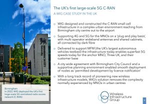 At the Small Cell Forum Awards 2022 evening, WIG were delighted to be honoured for Excellence in commercial deployment by neutral host for our 5G C-RAN deployment in the West Midlands which is transforming mobile connectivity across the Birmingham region.
