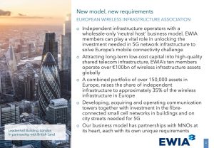 Alastair Davidson, Wireless Infrastructure Group Strategy Director, is a member of the UK5G Advisory board, and a Board member of the European Wireless Infrastructure Association (EWIA). He presented on behalf of EWIA with an overall message that while the neutral host business model enables better mobile connectivity at lower cost by capturing investment from low-cost infrastructure funds, EU deployment regulation and spectrum policy has taken little account of the evolving service provider landscape. Alastair called for policy makers to recognise the significant positive socio-economic implications of the evolving partnerships between MNOs and infrastructure-as-a-service providers.